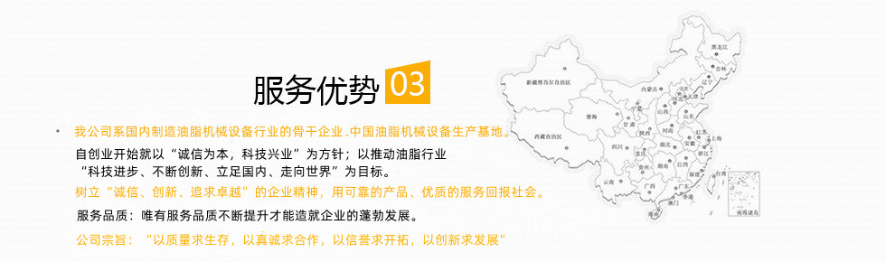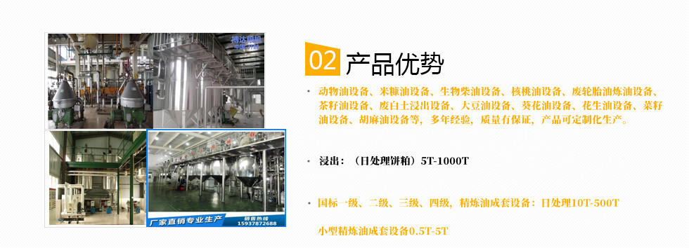 動物油設備、米糠油設備、生物柴油設備、核桃油設備、廢輪胎油煉油設備、茶籽油設備、廢白土浸出設備、大豆油設備、葵花油設備、花生油設備、菜籽油設備、胡麻油設備等。